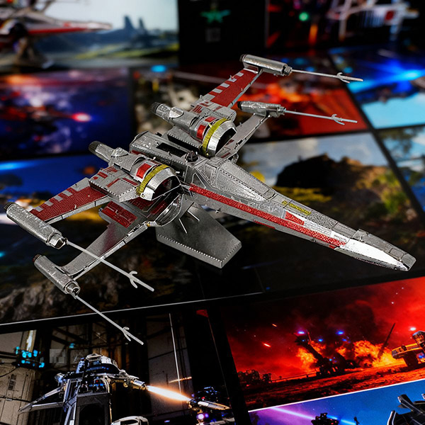 پازل فلزی سه بعدی مدل X-Wing Starfighter.شامل دو ورق فلزی هست که اجزای پازل بر روی آنها حکاکی شده و پس از جدا کردن این قطعات میتوان به راحتی آنها را به وسیله ی پین ها و شیارهای موجود در یکدیگر جایگذاری کرد و بدون چسباندن، مدل مورد نظر را ساخت.